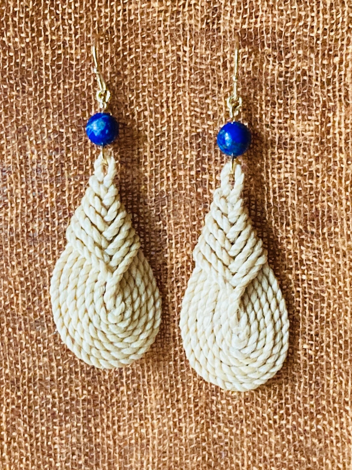 精麻飾りピアス茗荷結び:ラピスラズリ6㎜