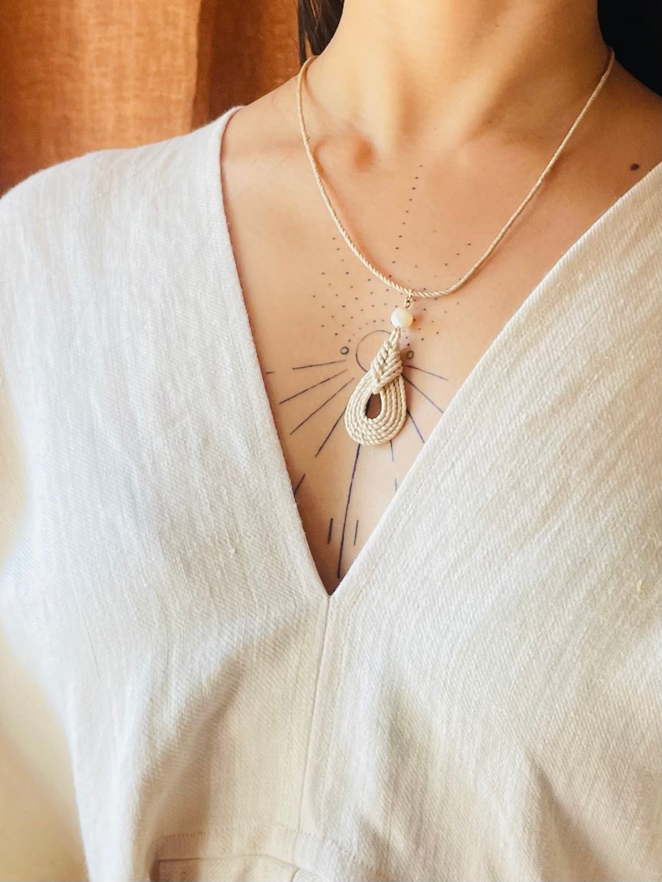 精麻飾りネックレス(トップは茗荷結び)