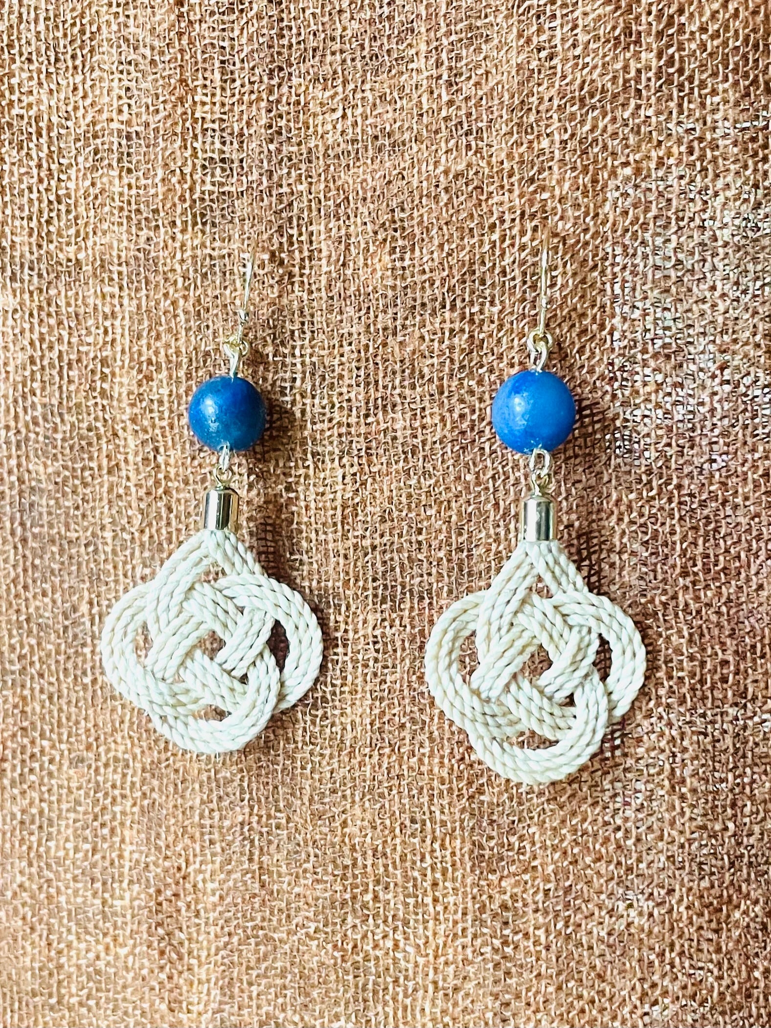 精麻飾りピアス淡路結び 石:ブルーアゲート8㎜