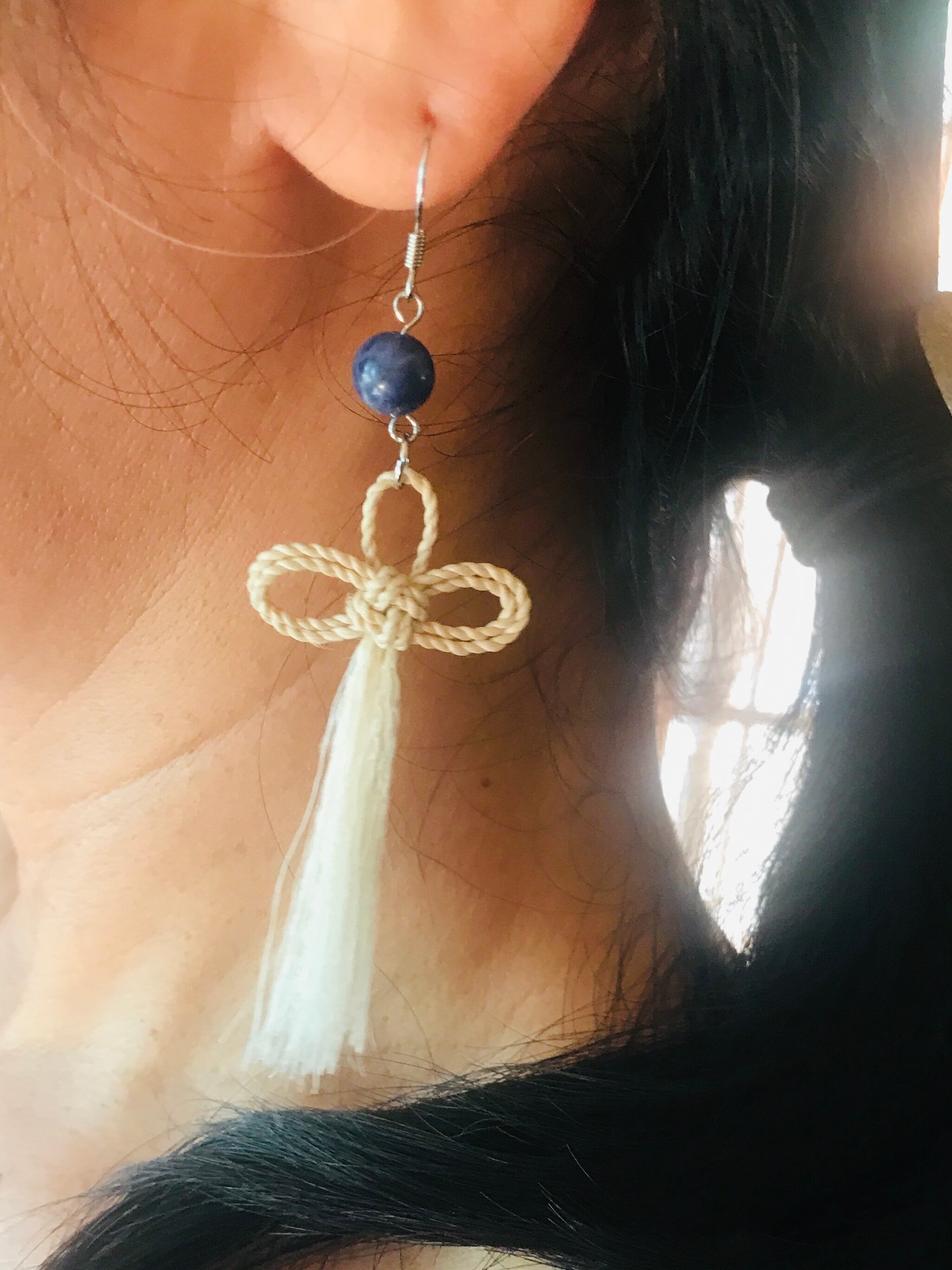 そんな精麻を二重叶う結びにしてピアスにしました。御守りアクセサリーとして身につけると