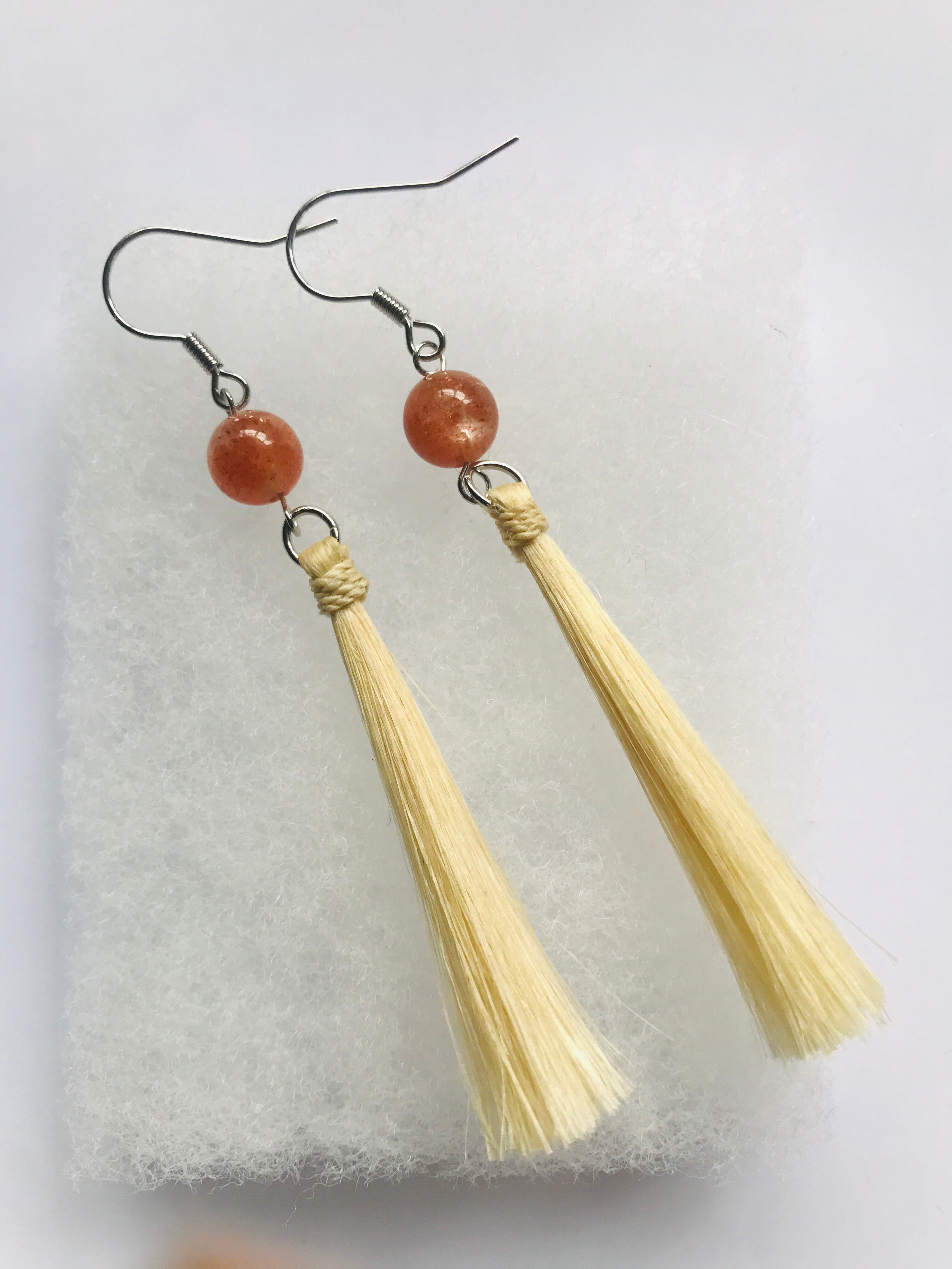 そんな精麻とマイカサンストーンと組み合わせてピアスにしました。