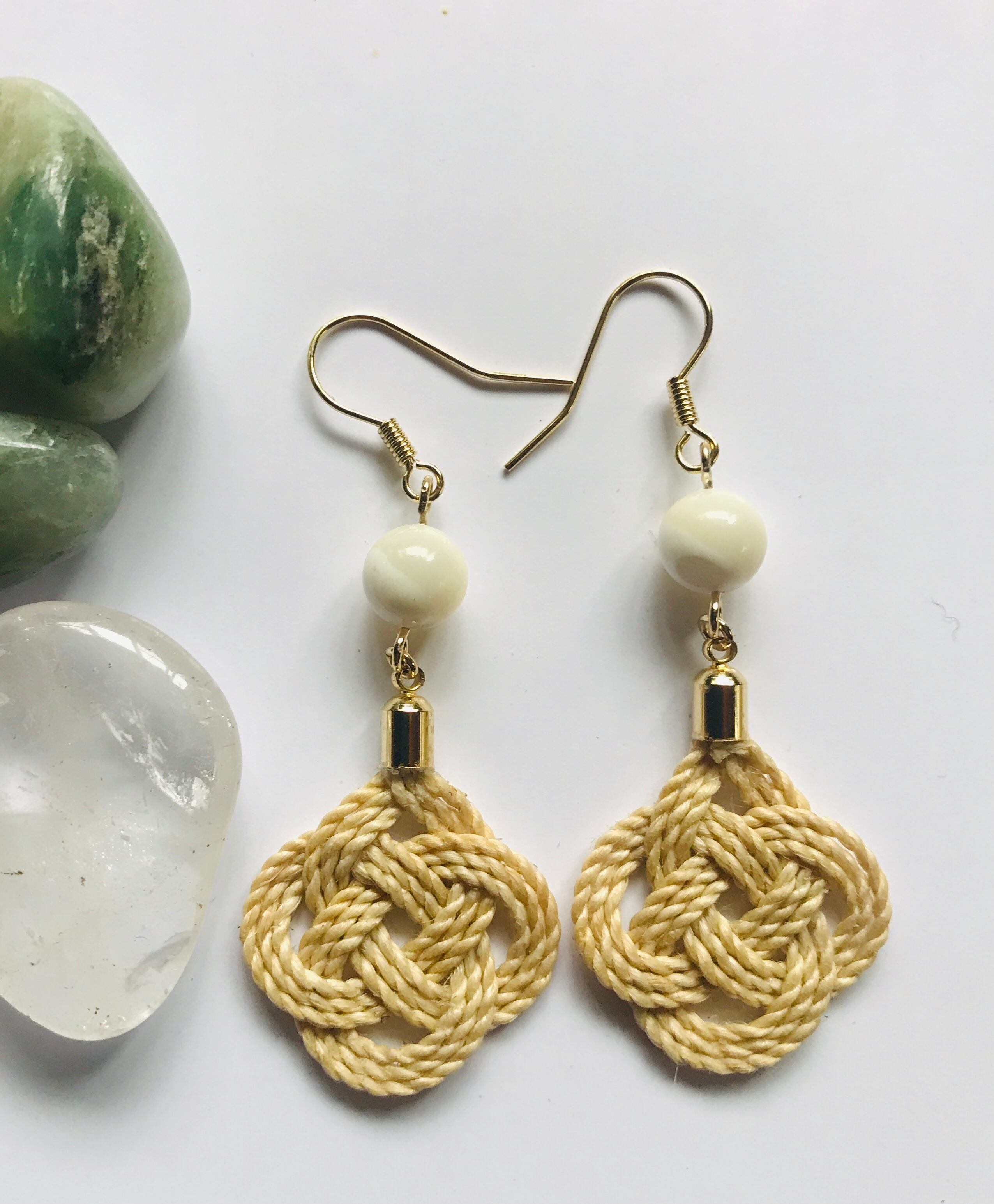 精麻飾りピアス淡路結び 石:マザーオブパール8㎜